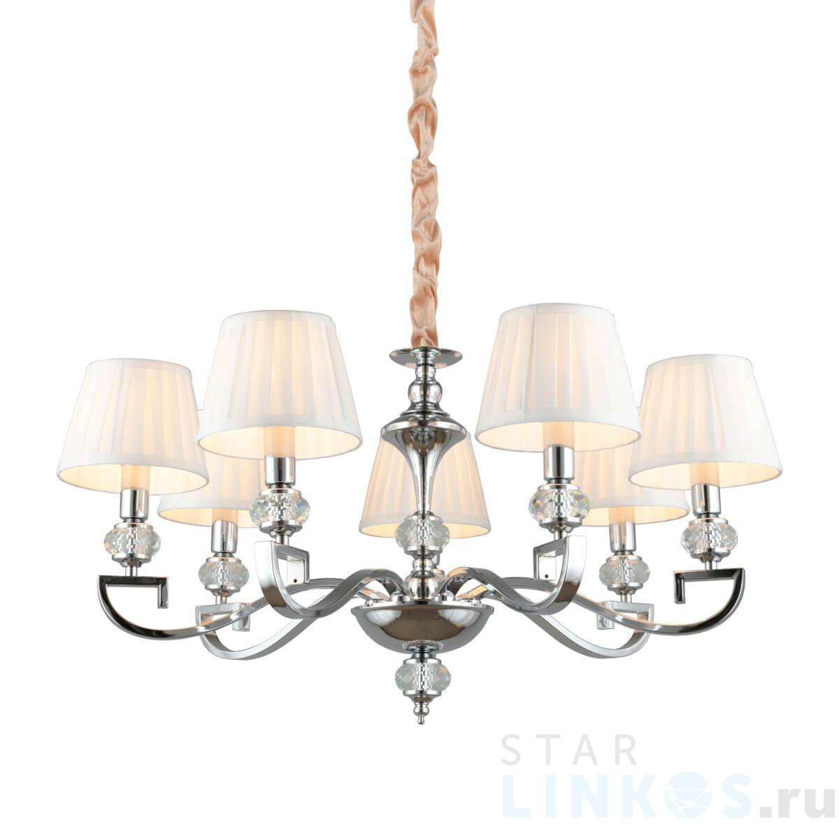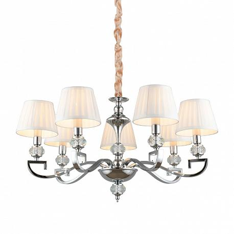 Поставщик рекомендует использовать лампы накаливания с цоколем E14 для освещения площади 16 м2. Подвесная люстра Omnilux Mozatte OML-72403-07 в классическом стиле используется в интерьере гостиной с установкой на потолок.