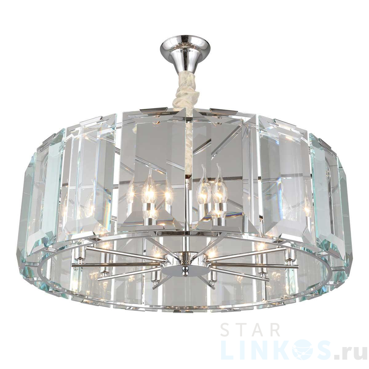 Поставщик рекомендует использовать лампы накаливания с цоколем E14 для освещения площади 22,2 м2. Подвесная люстра Omnilux Noventa OML-81513-10 в используется в интерьере гостиной с установкой на потолок.