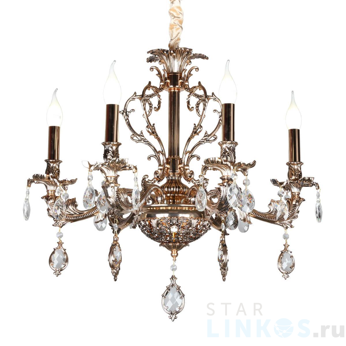 Поставщик рекомендует использовать лампы накаливания с цоколем E14 для освещения площади 18 м2. Подвесная люстра Omnilux Nureci OML-74903-08 в классическом стиле используется в интерьере гостиной с установкой на потолок.