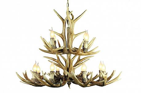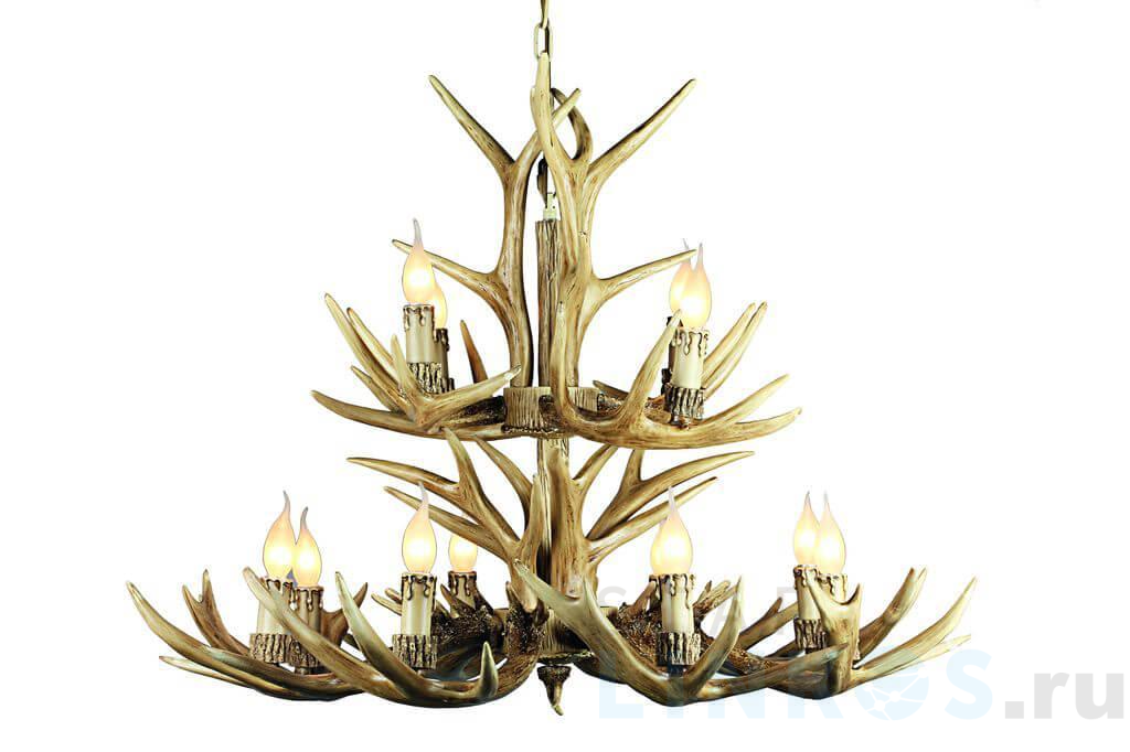 Поставщик рекомендует использовать лампы накаливания с цоколем E14 для освещения площади 40 м2. Подвесная люстра Omnilux OML-52003-12 в кантри-стиле используется в интерьере больших залов с установкой на потолок.