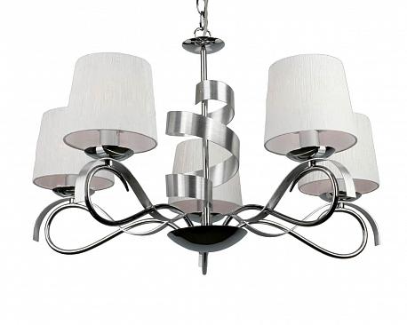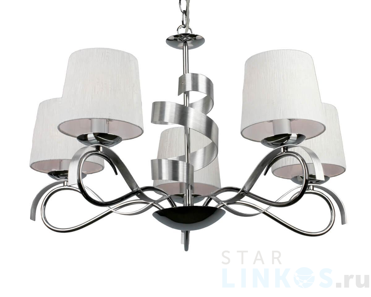Поставщик рекомендует использовать лампы накаливания с цоколем E14 для освещения площади 12 м2. Подвесная люстра Omnilux OML-60103-05 в классическом стиле используется в интерьере гостиной с установкой на потолок.
