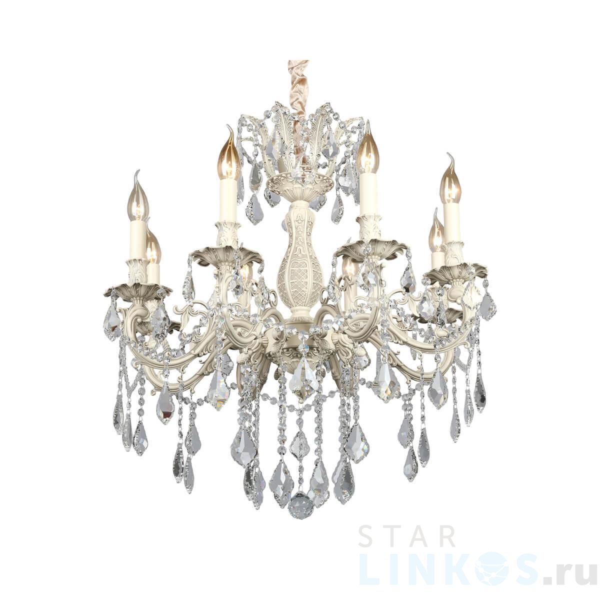Поставщик рекомендует использовать лампы накаливания с цоколем E14 для освещения площади 18 м2. Подвесная люстра Omnilux OML-74403-08 в классическом стиле используется в интерьере гостиной с установкой на потолок.