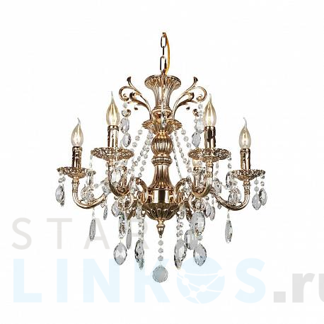 Поставщик рекомендует использовать лампы накаливания с цоколем E14 для освещения площади 20 м2. Подвесная люстра Omnilux OML-78903-06 в классическом стиле используется в интерьере гостиной с установкой на потолок.