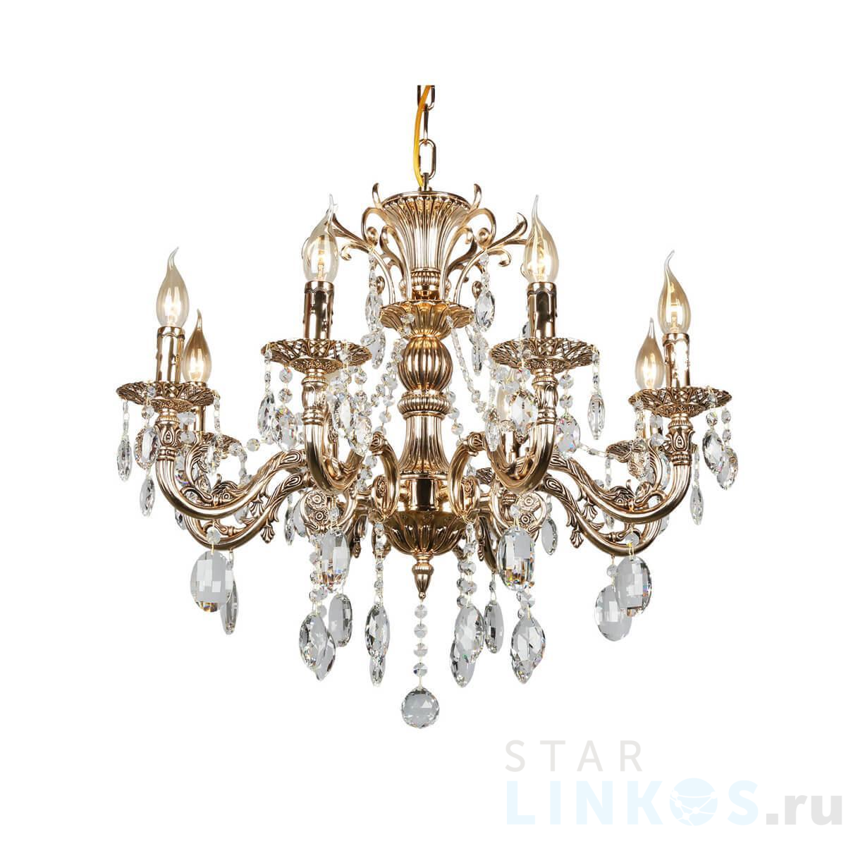 Поставщик рекомендует использовать лампы накаливания с цоколем E14 для освещения площади 27 м2. Подвесная люстра Omnilux OML-78903-08 в классическом стиле используется в интерьере гостиной с установкой на потолок.