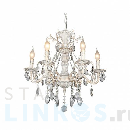 Поставщик рекомендует использовать лампы накаливания с цоколем E14 для освещения площади 20 м2. Подвесная люстра Omnilux OML-79003-06 в классическом стиле используется в интерьере гостиной с установкой на потолок.