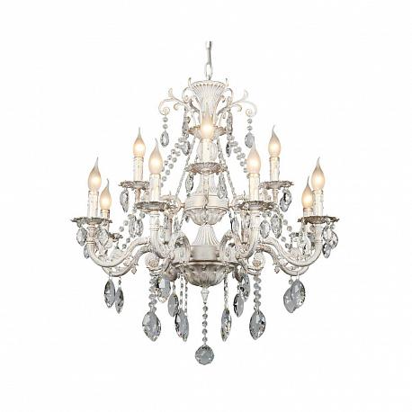 Поставщик рекомендует использовать лампы накаливания с цоколем E14 для освещения площади 40 м2. Подвесная люстра Omnilux OML-79003-12 в классическом стиле используется в интерьере гостиной с установкой на потолок.