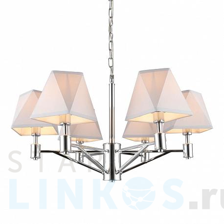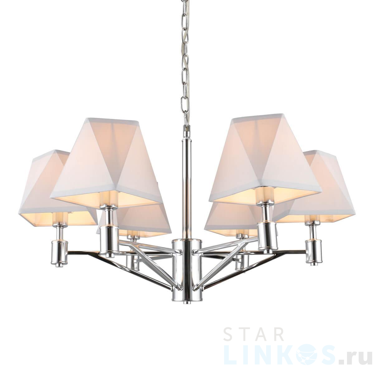 Поставщик рекомендует использовать лампы накаливания с цоколем E14 для освещения площади 12 м2. Подвесная люстра Omnilux Ossana OML-65103-06 в используется в интерьере гостиной с установкой на потолок.