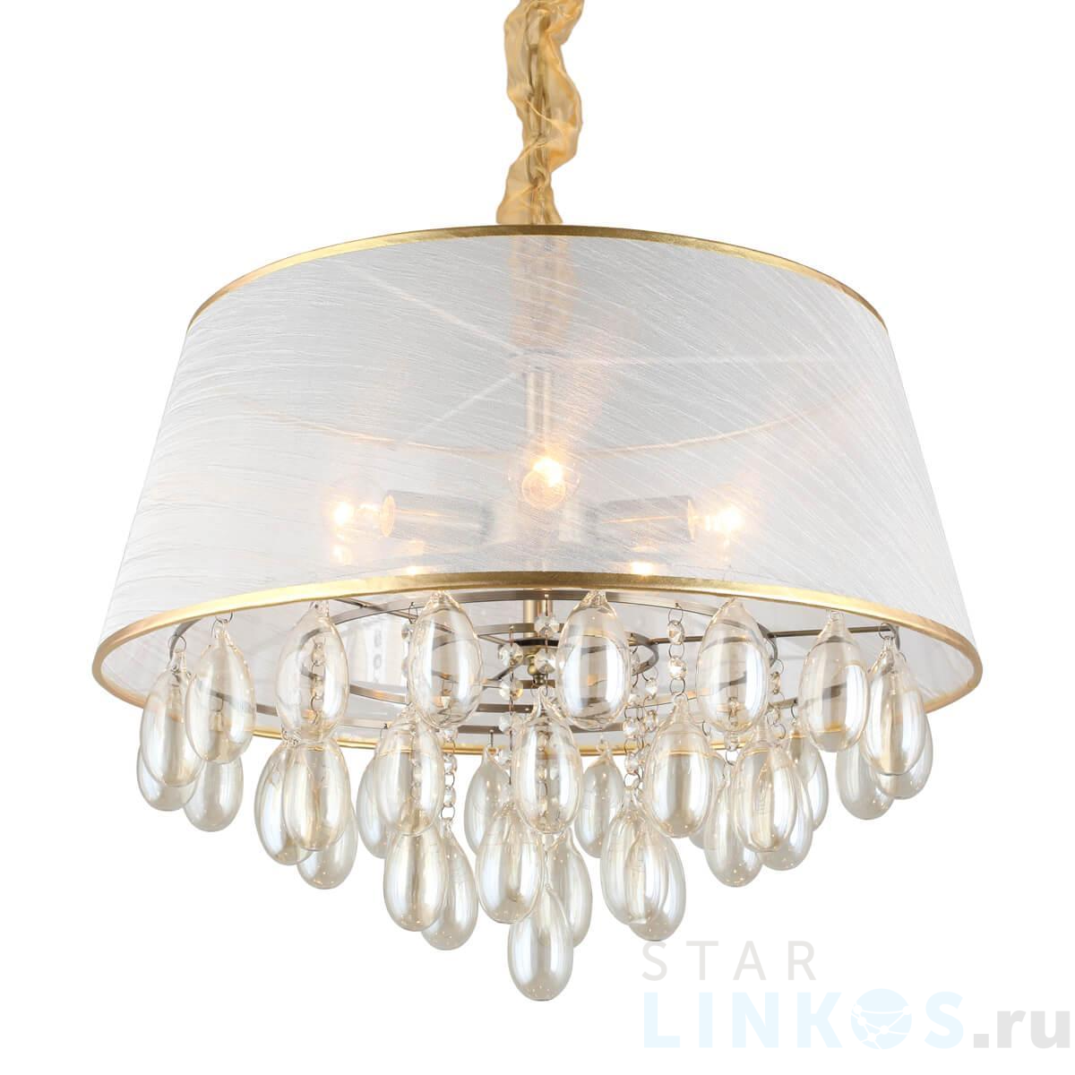Поставщик рекомендует использовать лампы накаливания с цоколем E14 для освещения площади 11,1 м2. Подвесная люстра Omnilux Pineto OML-71803-05 в классическом стиле используется в интерьере спальни с установкой на потолок.