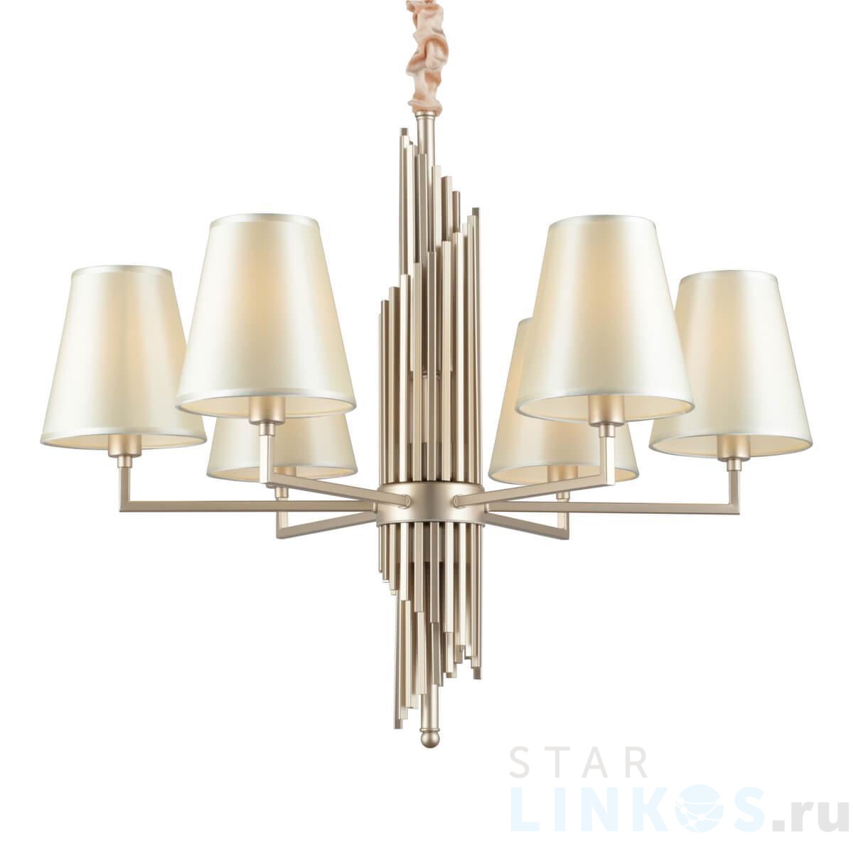 Поставщик рекомендует использовать лампы накаливания с цоколем E14 для освещения площади 14 м2. Подвесная люстра Omnilux Porlezza OML-72203-06 в классическом стиле используется в интерьере гостиной с установкой на потолок.