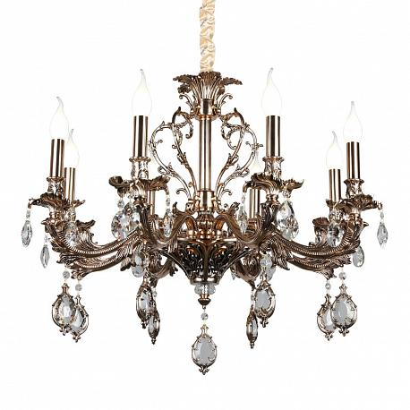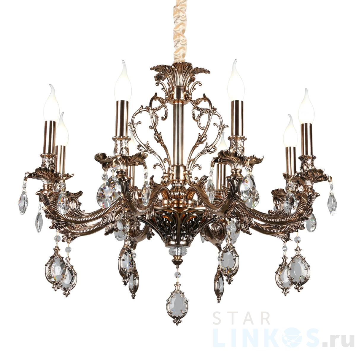 Поставщик рекомендует использовать лампы накаливания с цоколем E14 для освещения площади 18 м2. Подвесная люстра Omnilux Senis OML-74703-08 в классическом стиле используется в интерьере гостиной с установкой на потолок.