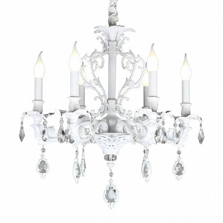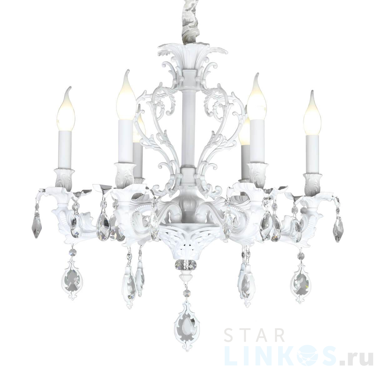 Поставщик рекомендует использовать лампы накаливания с цоколем E14 для освещения площади 14 м2. Подвесная люстра Omnilux Senis OML-74713-06 в классическом стиле используется в интерьере спальни с установкой на потолок.
