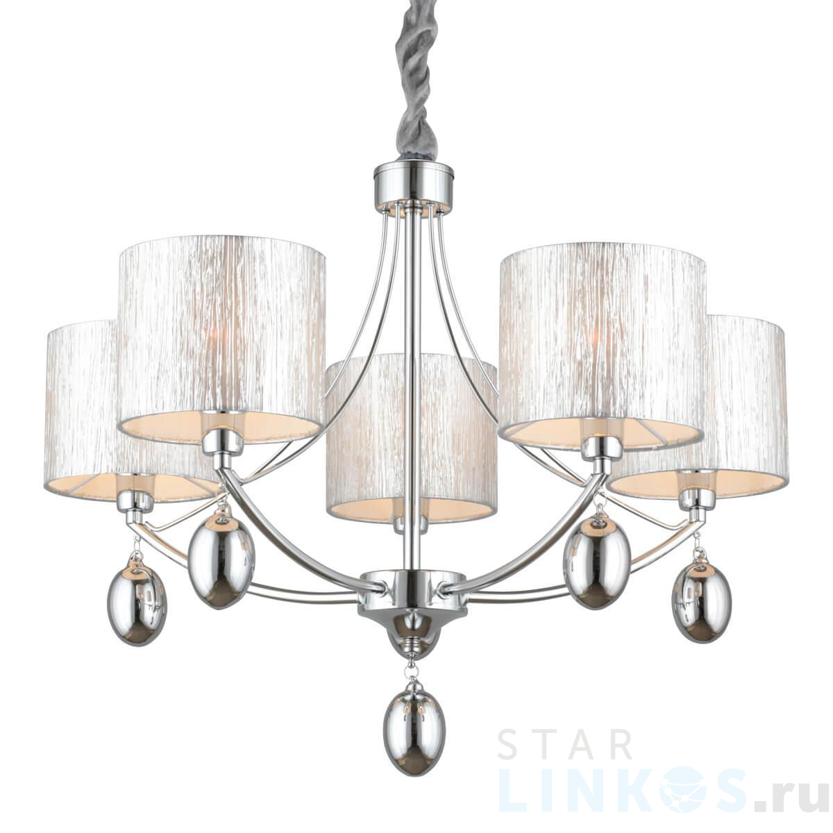 Поставщик рекомендует использовать лампы накаливания с цоколем E14 для освещения площади 12 м2. Подвесная люстра Omnilux Stelvio OML-28507-05 в используется в интерьере спальни с установкой на потолок.