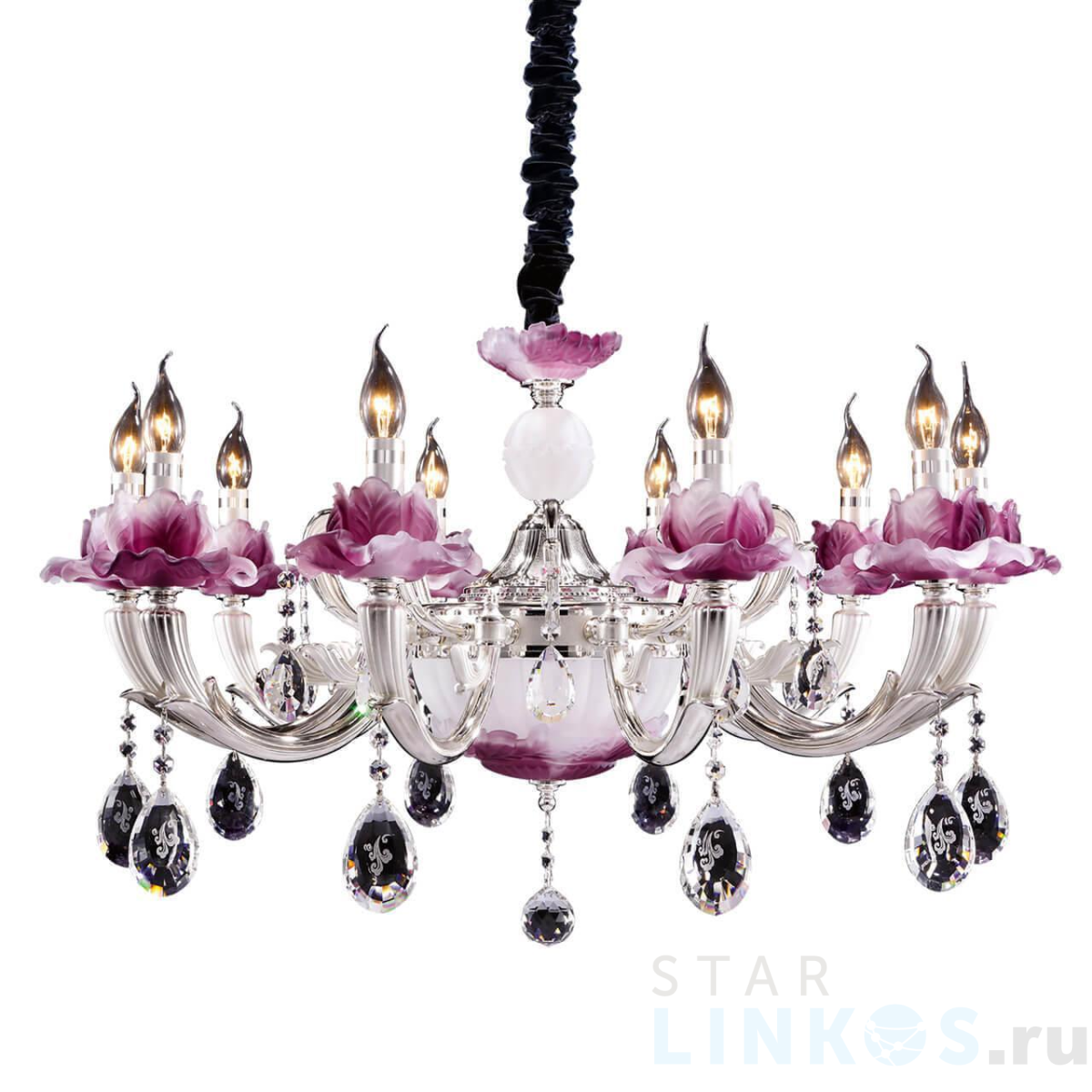Поставщик рекомендует использовать лампы накаливания с цоколем E14 для освещения площади 22,2 м2. Подвесная люстра Osgona Anemone 714104 в стиле прованс используется в интерьере гостиной с установкой на потолок.