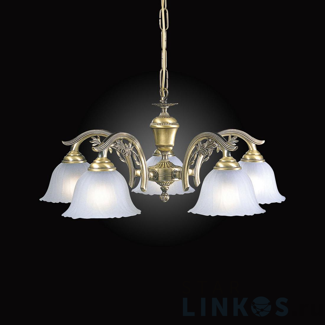 Поставщик рекомендует использовать лампы накаливания с цоколем E27 для освещения площади 15 м2. Подвесная люстра Reccagni Angelo L.2720/5 в классическом стиле используется в интерьере гостиной с установкой на потолок.