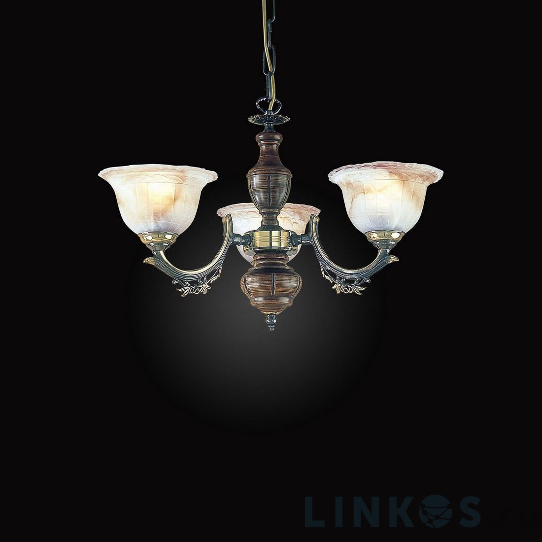 Поставщик рекомендует использовать лампы накаливания с цоколем E27 для освещения площади 9 м2. Подвесная люстра Reccagni Angelo L.2801/3 в классическом стиле используется в интерьере спальни с установкой на потолок.