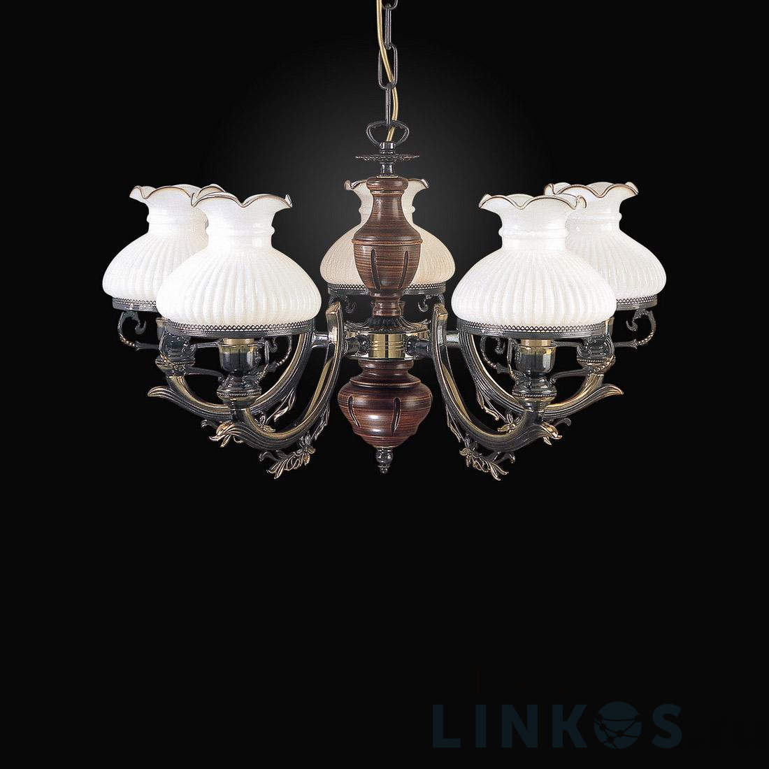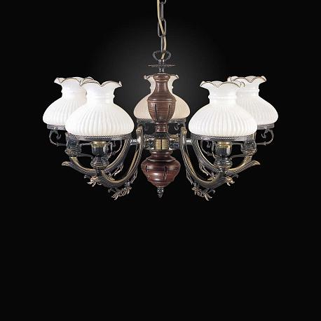 Подвесная люстра Reccagni Angelo L.2810/5 в кантри-стиле используется в интерьере кафе и ресторанов с установкой на потолок.