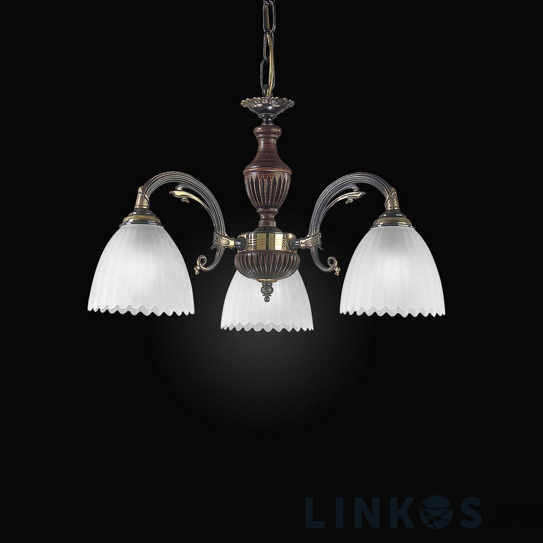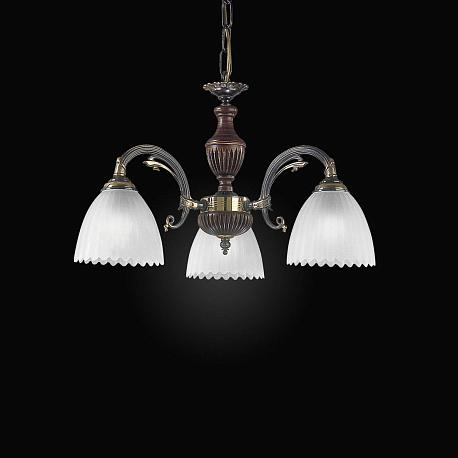 Поставщик рекомендует использовать лампы накаливания с цоколем E27 для освещения площади 9 м2. Подвесная люстра Reccagni Angelo L.3510/3 в классическом стиле используется в интерьере спальни с установкой на потолок.