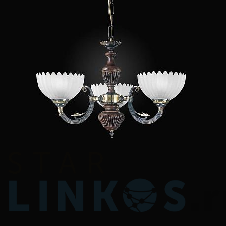 Поставщик рекомендует использовать лампы накаливания с цоколем E27 для освещения площади 9 м2. Подвесная люстра Reccagni Angelo L.3610/3 в классическом стиле используется в интерьере спальни с установкой на потолок.