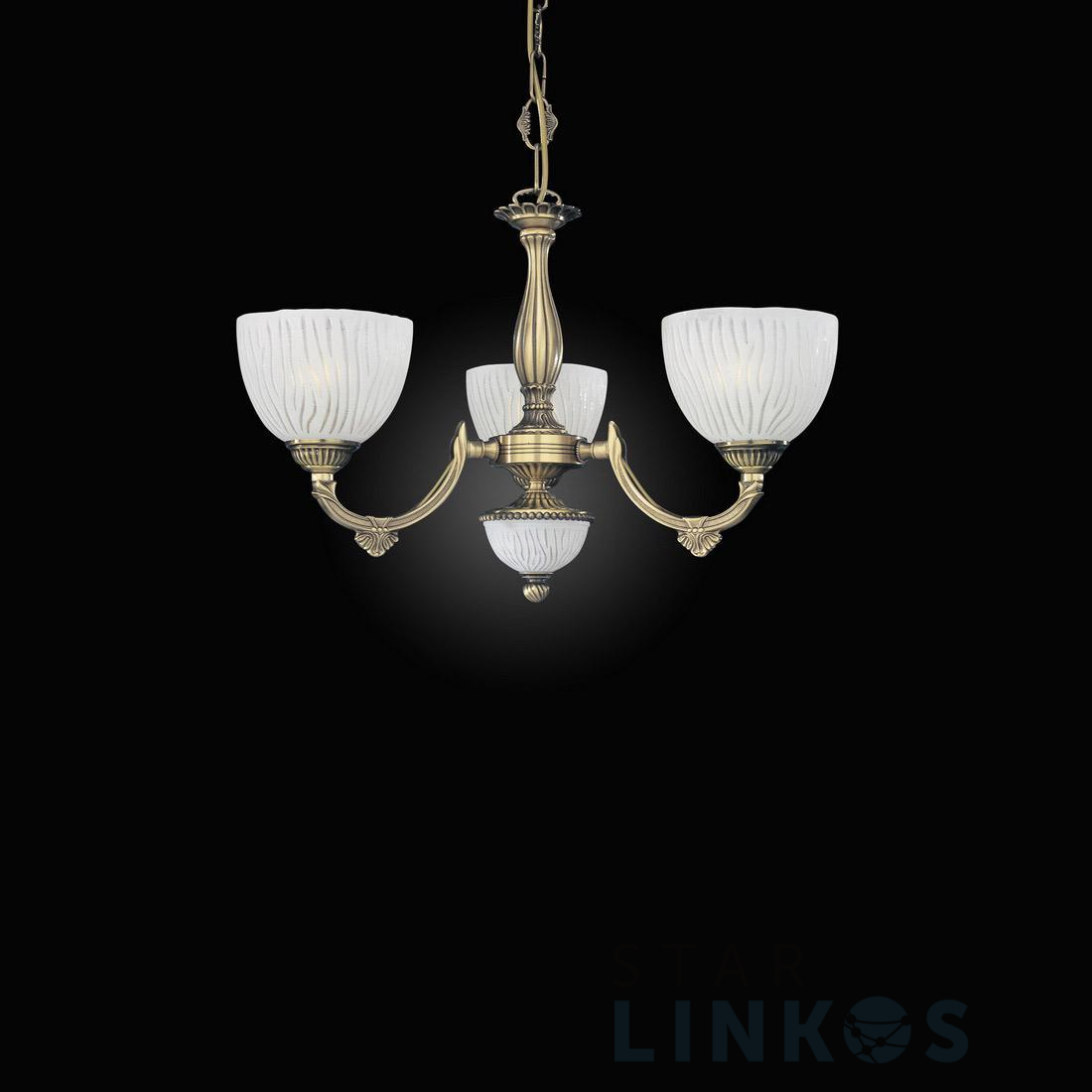 Поставщик рекомендует использовать лампы накаливания с цоколем E27 для освещения площади 9 м2. Подвесная люстра Reccagni Angelo L.5600/3 в классическом стиле используется в интерьере спальни с установкой на потолок.