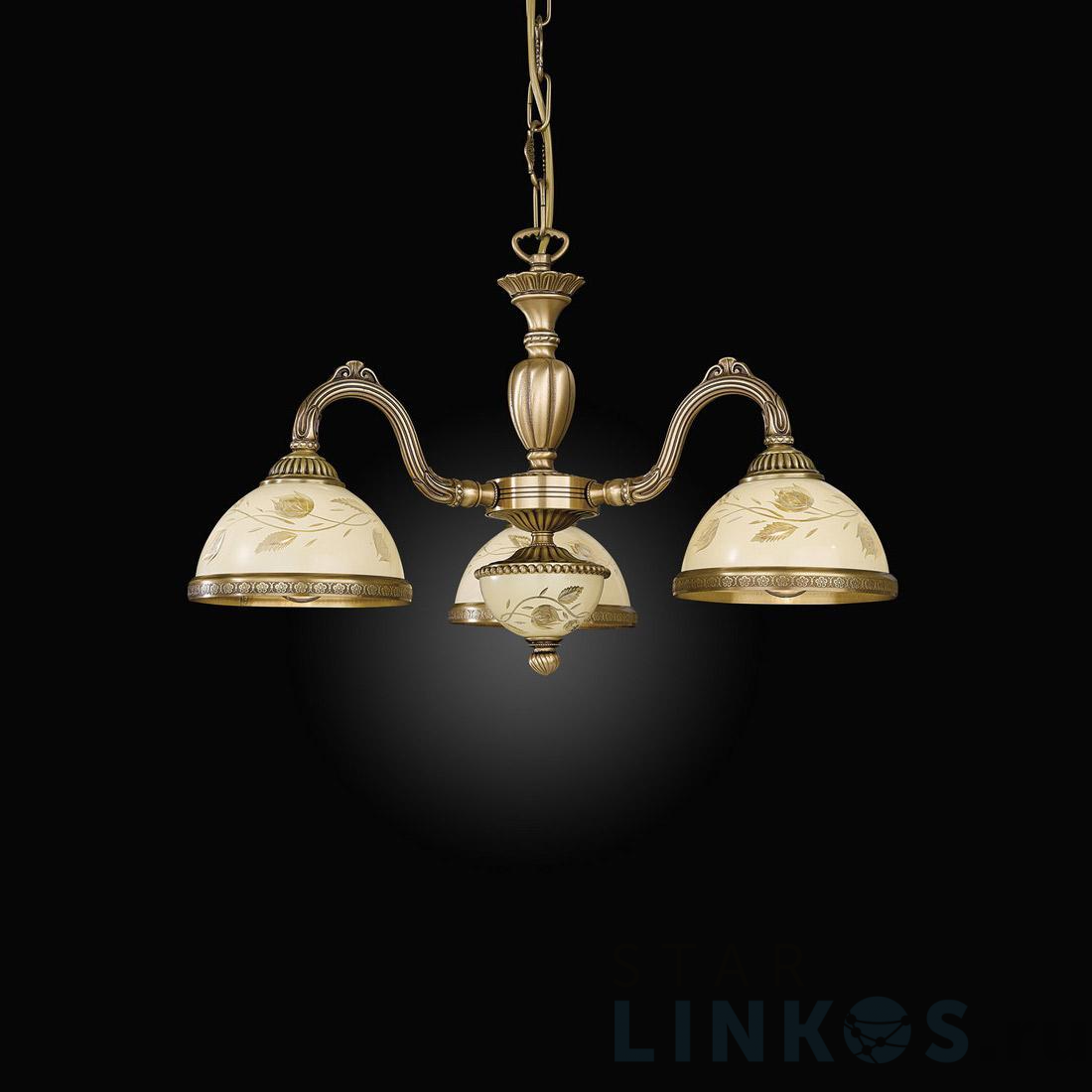 Поставщик рекомендует использовать лампы накаливания с цоколем E27 для освещения площади 9 м2. Подвесная люстра Reccagni Angelo L.6208/3 в классическом стиле используется в интерьере спальни с установкой на потолок.