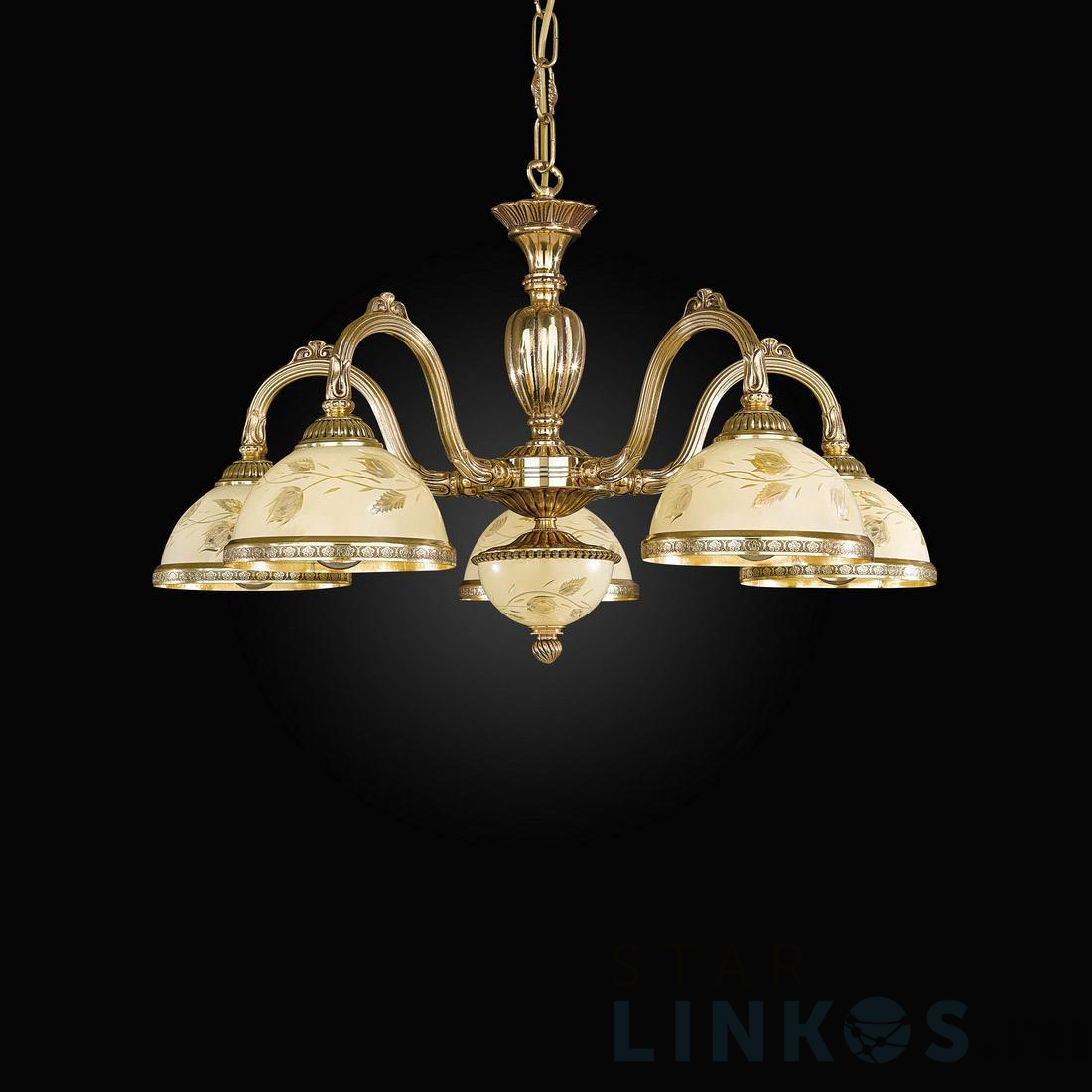 Поставщик рекомендует использовать лампы накаливания с цоколем E27 для освещения площади 15 м2. Подвесная люстра Reccagni Angelo L.6308/5 в классическом стиле используется в интерьере гостиной с установкой на потолок.