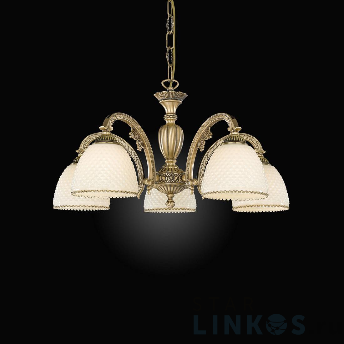 Поставщик рекомендует использовать лампы накаливания с цоколем E27 для освещения площади 15 м2. Подвесная люстра Reccagni Angelo L.7005/5 в классическом стиле используется в интерьере гостиной с установкой на потолок.
