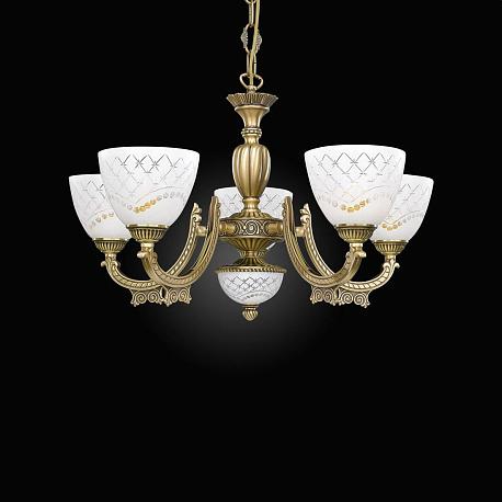 Поставщик рекомендует использовать лампы накаливания с цоколем E27 для освещения площади 15 м2. Подвесная люстра Reccagni Angelo L.7052/5 в классическом стиле используется в интерьере гостиной с установкой на потолок.