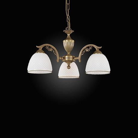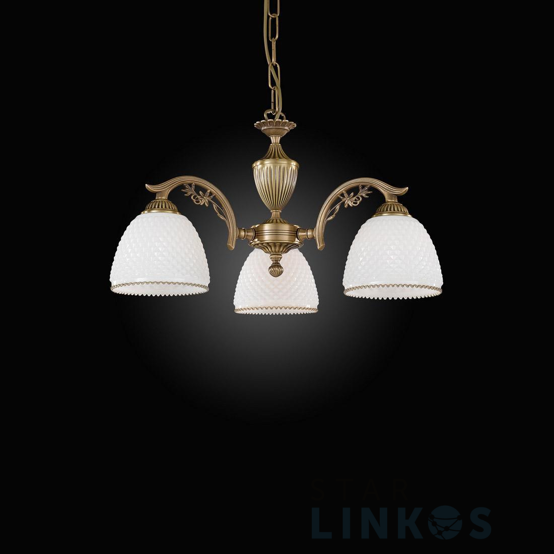 Поставщик рекомендует использовать лампы накаливания с цоколем E27 для освещения площади 9 м2. Подвесная люстра Reccagni Angelo L.8601/3 в классическом стиле используется в интерьере спальни с установкой на потолок.