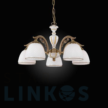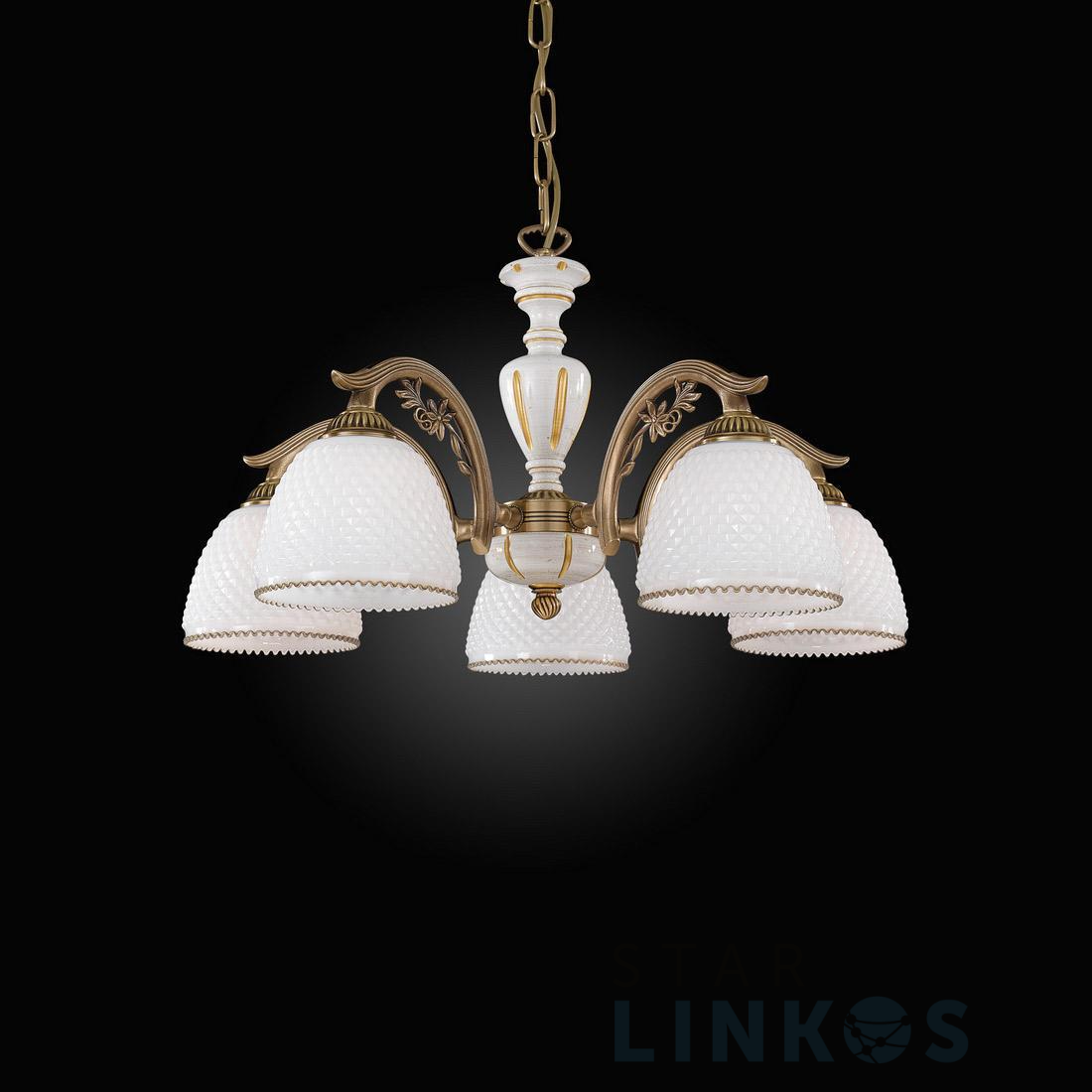 Поставщик рекомендует использовать лампы накаливания с цоколем E27 для освещения площади 15 м2. Подвесная люстра Reccagni Angelo L.8606/5 в классическом стиле используется в интерьере гостиной с установкой на потолок.