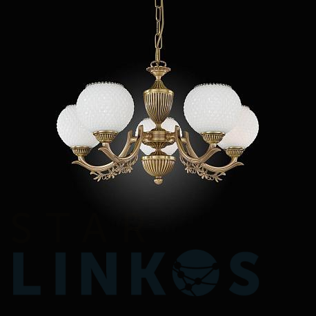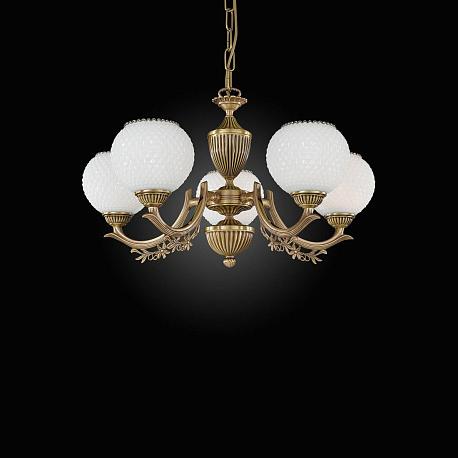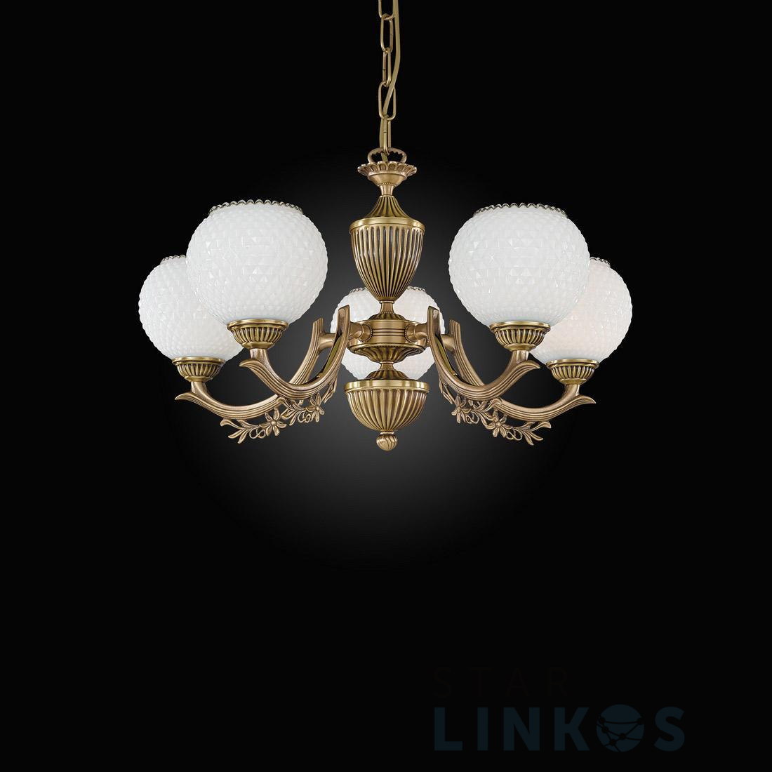 Поставщик рекомендует использовать лампы накаливания с цоколем E27 для освещения площади 15 м2. Подвесная люстра Reccagni Angelo L.8650/5 в классическом стиле используется в интерьере гостиной с установкой на потолок.