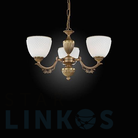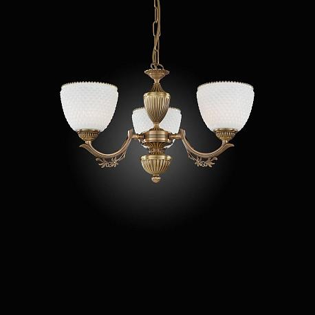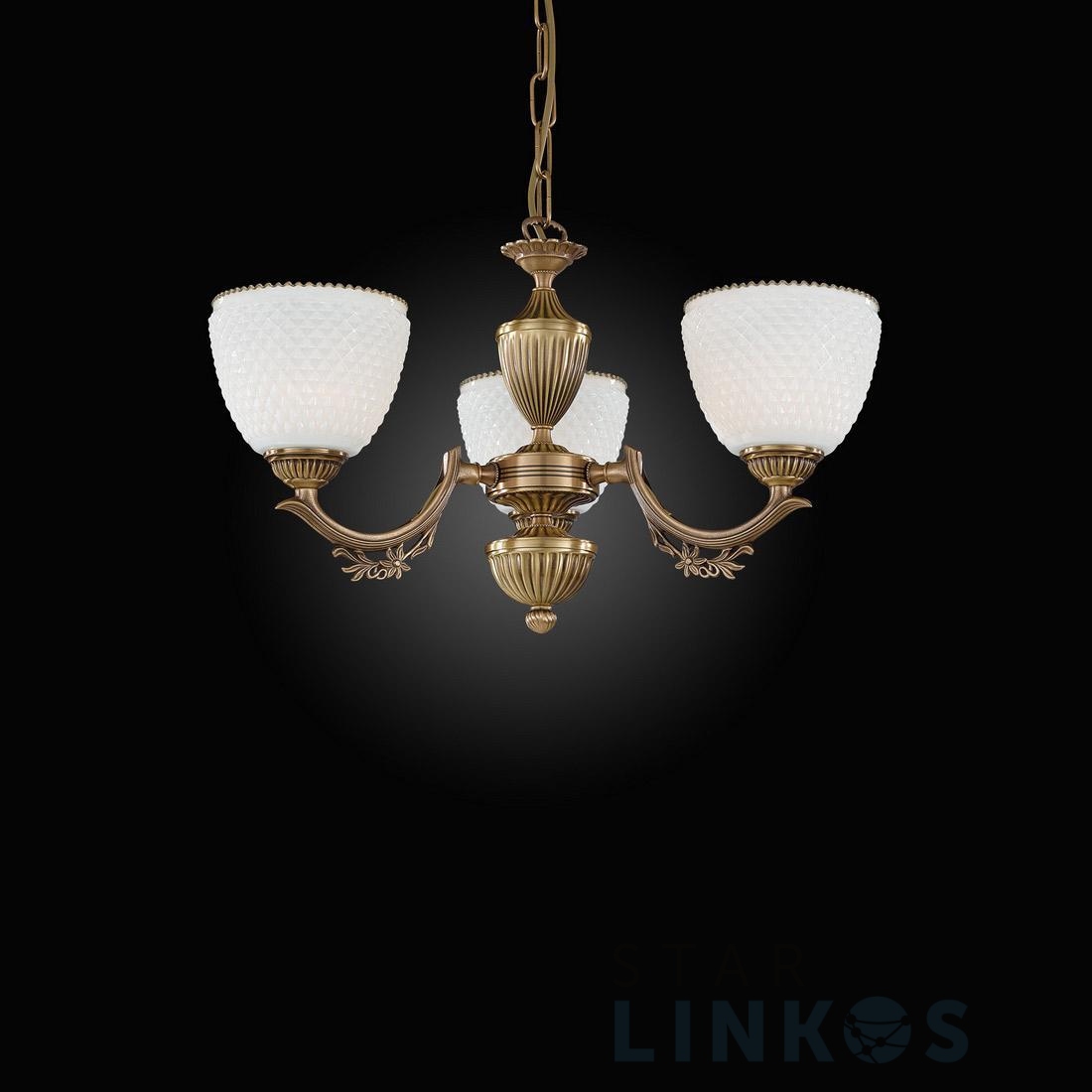 Поставщик рекомендует использовать лампы накаливания с цоколем E27 для освещения площади 9 м2. Подвесная люстра Reccagni Angelo L.8651/3 в классическом стиле используется в интерьере кухни с установкой на потолок.