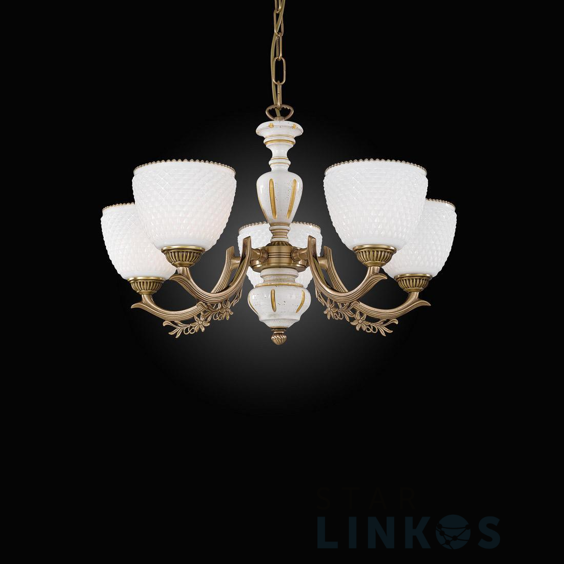 Поставщик рекомендует использовать лампы накаливания с цоколем E27 для освещения площади 15 м2. Подвесная люстра Reccagni Angelo L.8656/5 в классическом стиле используется в интерьере гостиной с установкой на потолок.