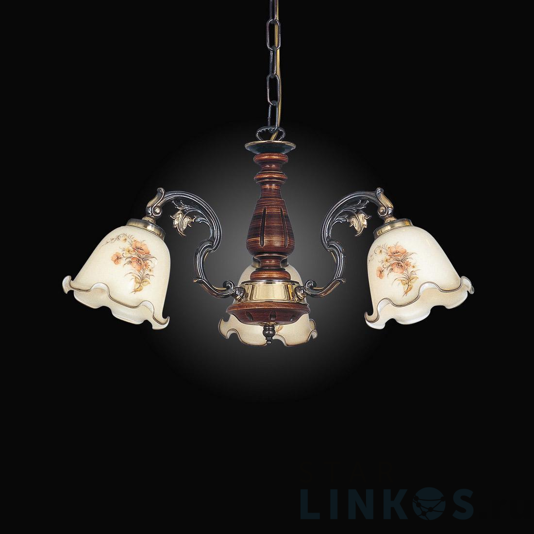 Поставщик рекомендует использовать лампы накаливания с цоколем E14 для освещения площади 10 м2. Подвесная люстра Reccagni Angelo L.965/3.DEC в кантри-стиле используется в интерьере спальни с установкой на потолок.
