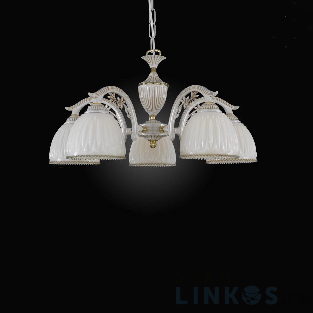 Поставщик рекомендует использовать лампы накаливания с цоколем E27 для освещения площади 15 м2. Подвесная люстра Reccagni Angelo L.9671/5 в классическом стиле используется в интерьере гостиной с установкой на потолок.