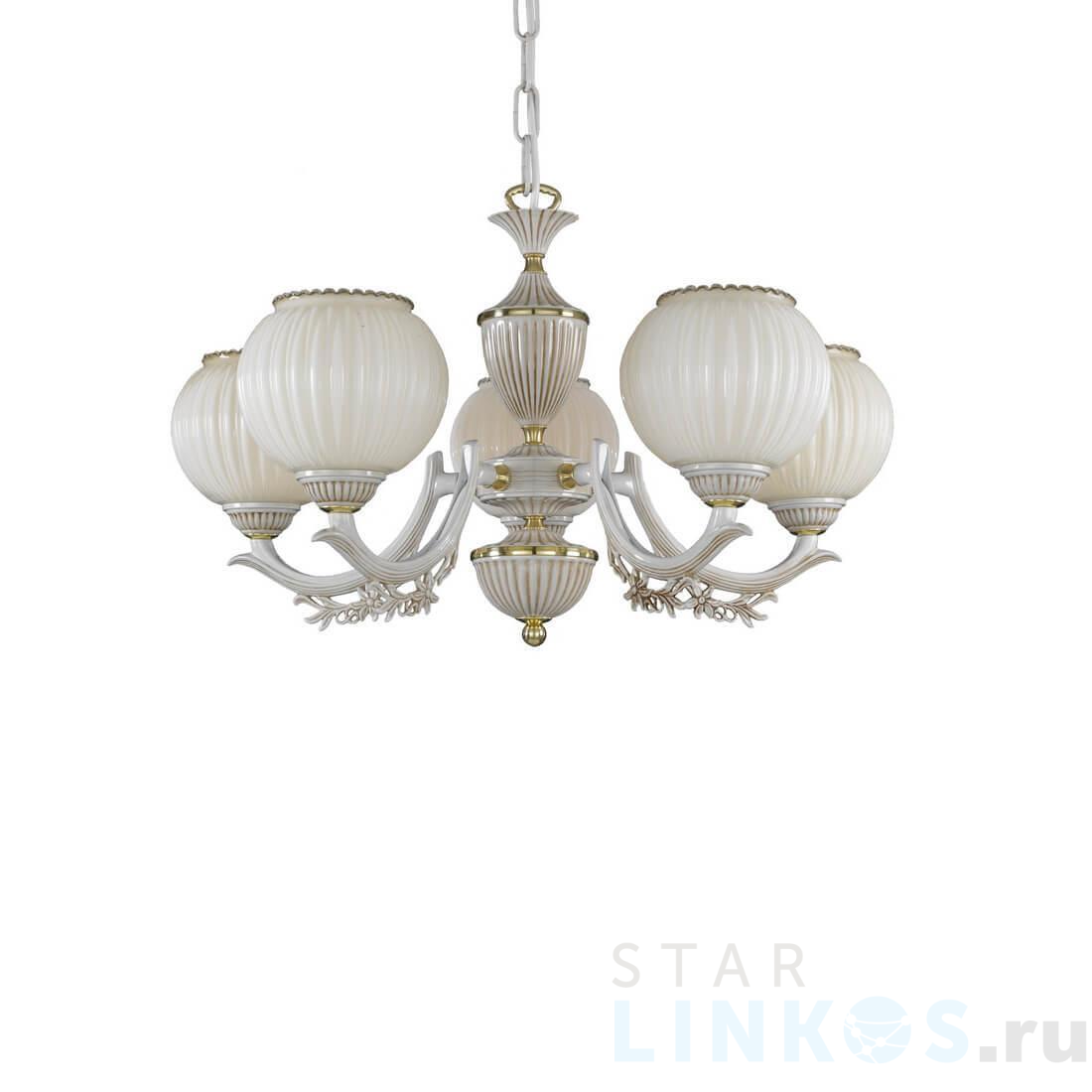 Поставщик рекомендует использовать лампы накаливания с цоколем E27 для освещения площади 15 м2. Подвесная люстра Reccagni Angelo L.9680/5 в классическом стиле используется в интерьере гостиной с установкой на потолок.