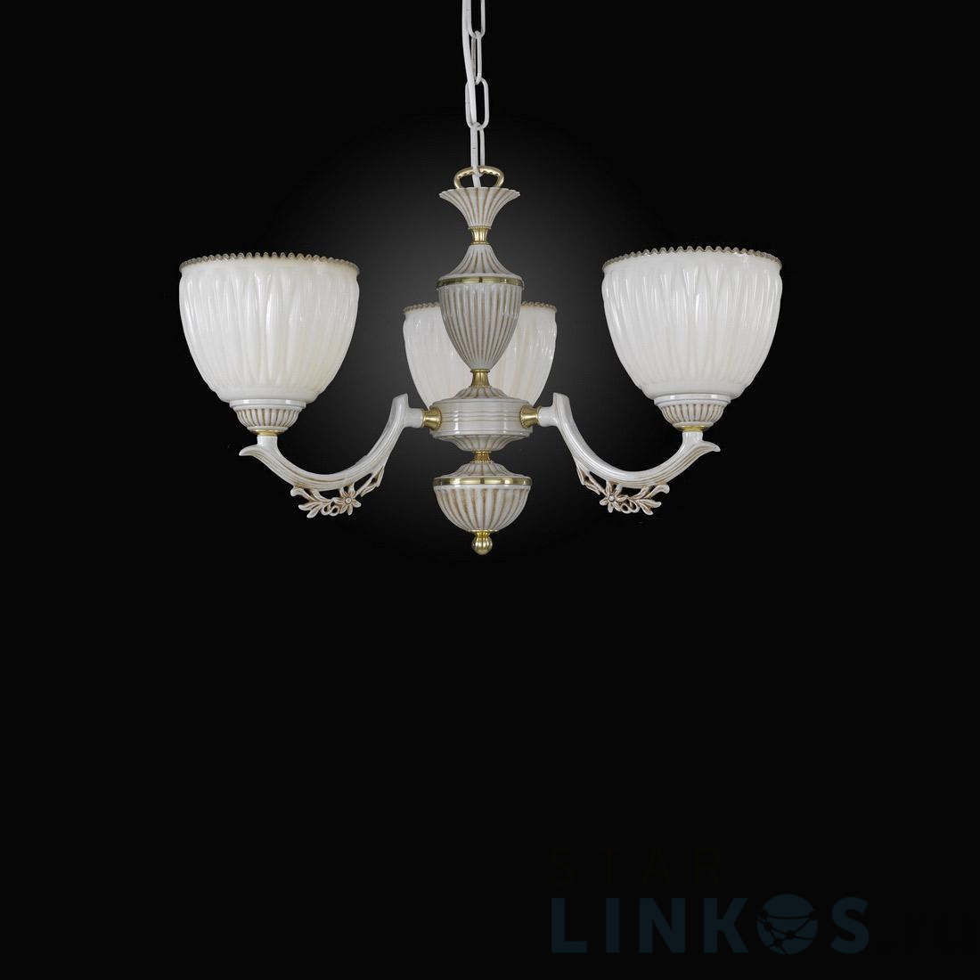 Поставщик рекомендует использовать лампы накаливания с цоколем E27 для освещения площади 9 м2. Подвесная люстра Reccagni Angelo L.9681/3 в классическом стиле используется в интерьере спальни с установкой на потолок.