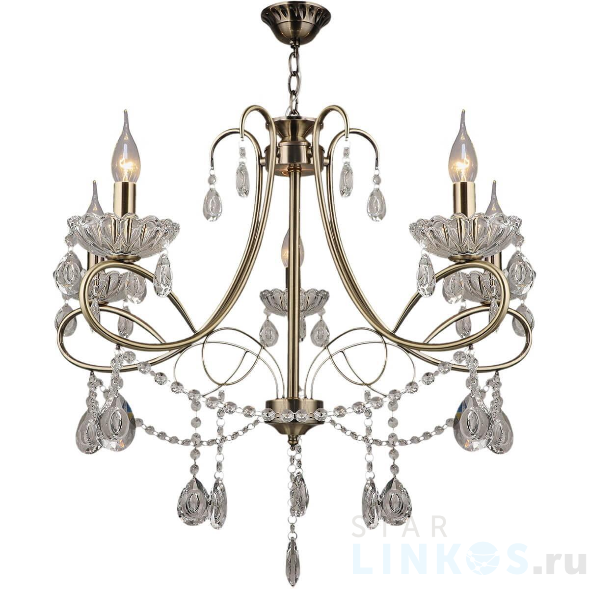 Поставщик рекомендует использовать лампы накаливания с цоколем E14 для освещения площади 40 м2. Подвесная люстра Reluce 01666-0.4-05 в классическом стиле используется в интерьере гостиной с установкой на потолок.