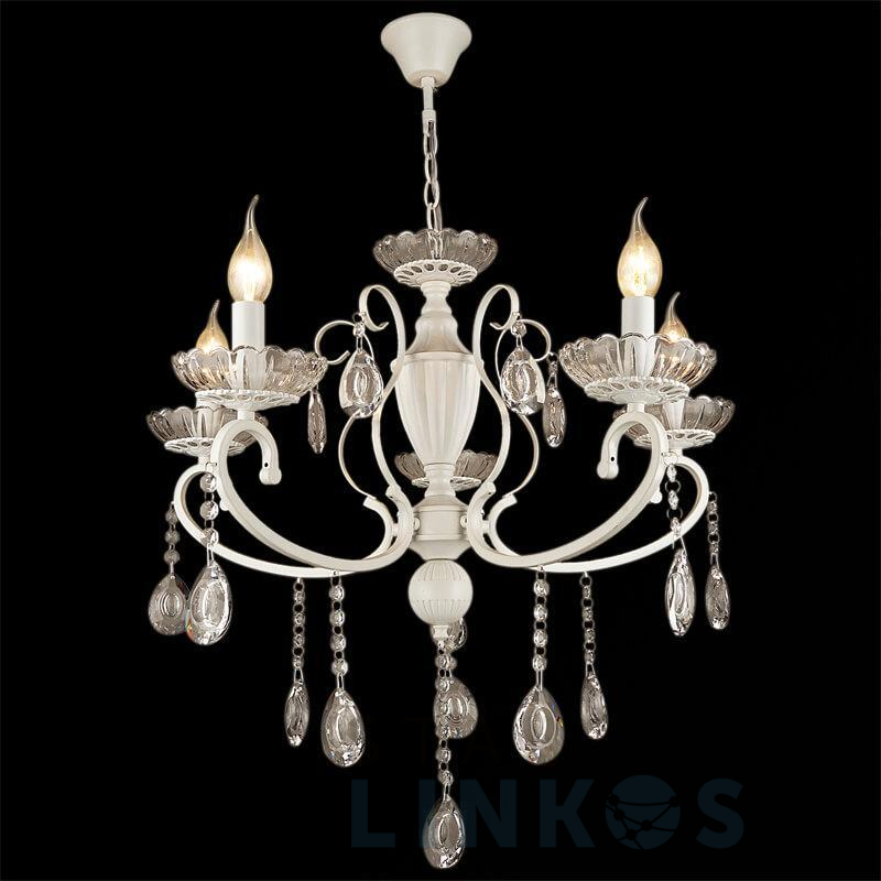 Поставщик рекомендует использовать лампы накаливания с цоколем E14 для освещения площади 40 м2. Подвесная люстра Reluce 04136-0.4-05 в классическом стиле используется в интерьере гостиной с установкой на потолок.