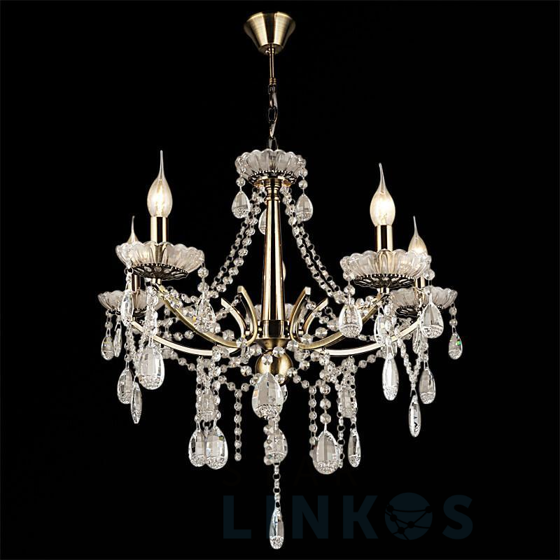 Поставщик рекомендует использовать лампы накаливания с цоколем E14 для освещения площади 40 м2. Подвесная люстра Reluce 04137-0.4-05 в классическом стиле используется в интерьере гостиной с установкой на потолок.