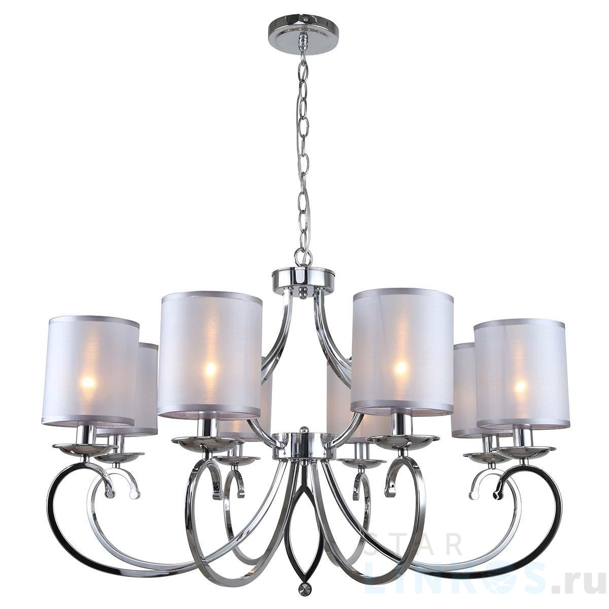 Поставщик рекомендует использовать лампы накаливания для освещения площади 24 м2. Подвесная люстра Rivoli Amy 2063-308 Б0055450 в классическом стиле используется в интерьере гостиной с установкой на потолок.