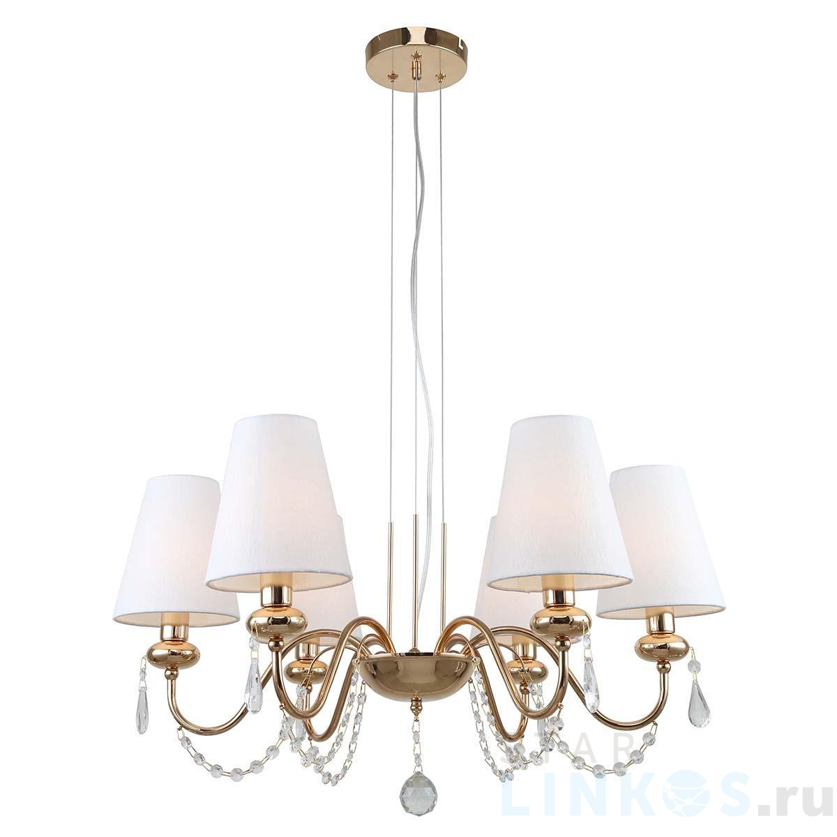 Поставщик рекомендует использовать лампы накаливания для освещения площади 18 м2. Подвесная люстра Rivoli Becky 2066-306 Б0055463 в классическом стиле используется в интерьере гостиной с установкой на потолок.