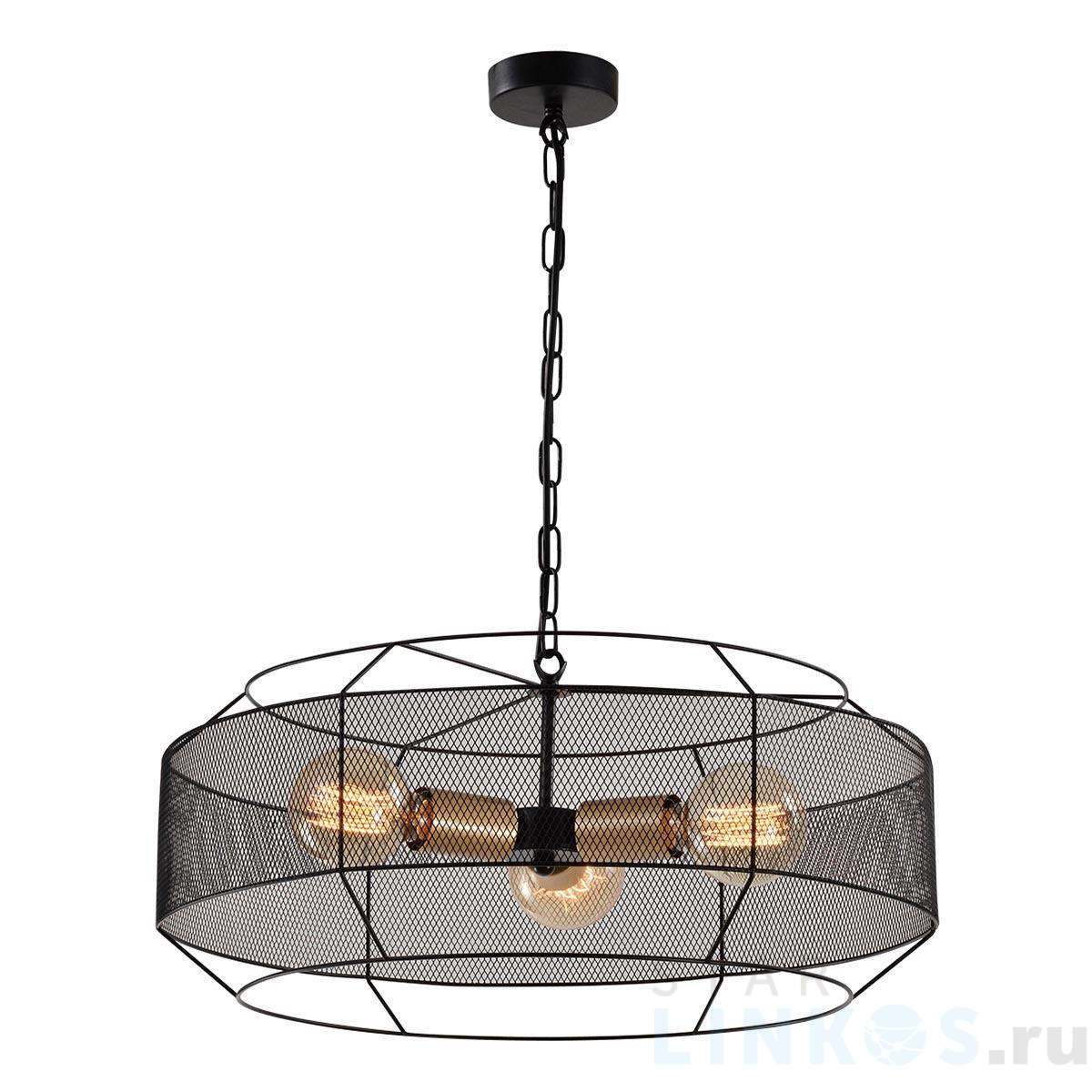 Поставщик рекомендует использовать лампы накаливания с цоколем E27 для освещения площади 9 м2. Подвесная люстра Rivoli Ermentrud 5086-203 Б0052456 в стиле лофт используется в интерьере кухни с установкой на потолок.