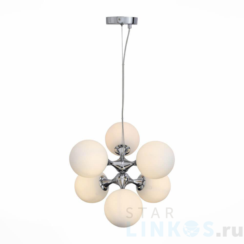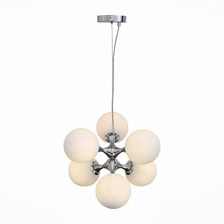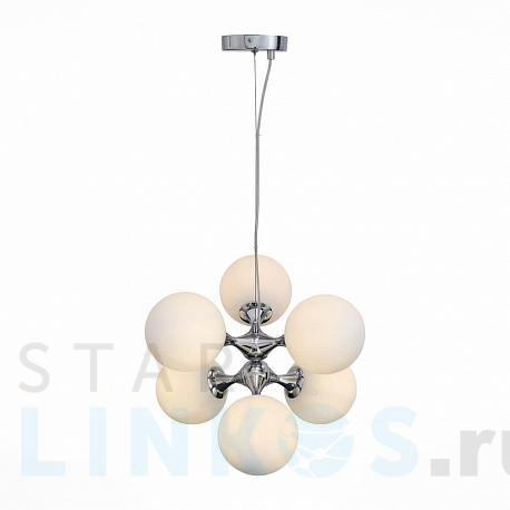 Поставщик рекомендует использовать лампы накаливания с цоколем E27 для освещения площади 20 м2. Подвесная люстра ST Luce Arte SL549.103.06 в стиле Хай-Тек используется в интерьере офиса с установкой на потолок.