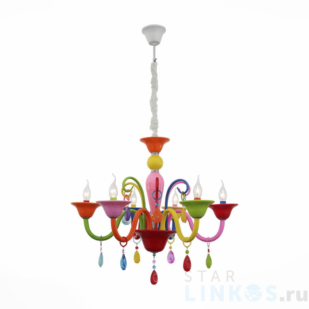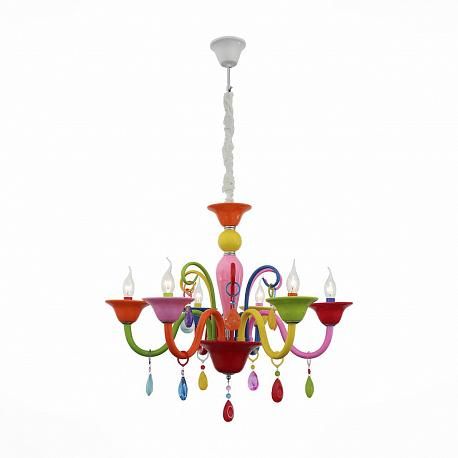 Поставщик рекомендует использовать лампы накаливания с цоколем E14 для освещения площади 13,3 м2. Подвесная люстра ST Luce Delizia SL672.963.06 в современном стиле используется в интерьере детской с установкой на потолок.