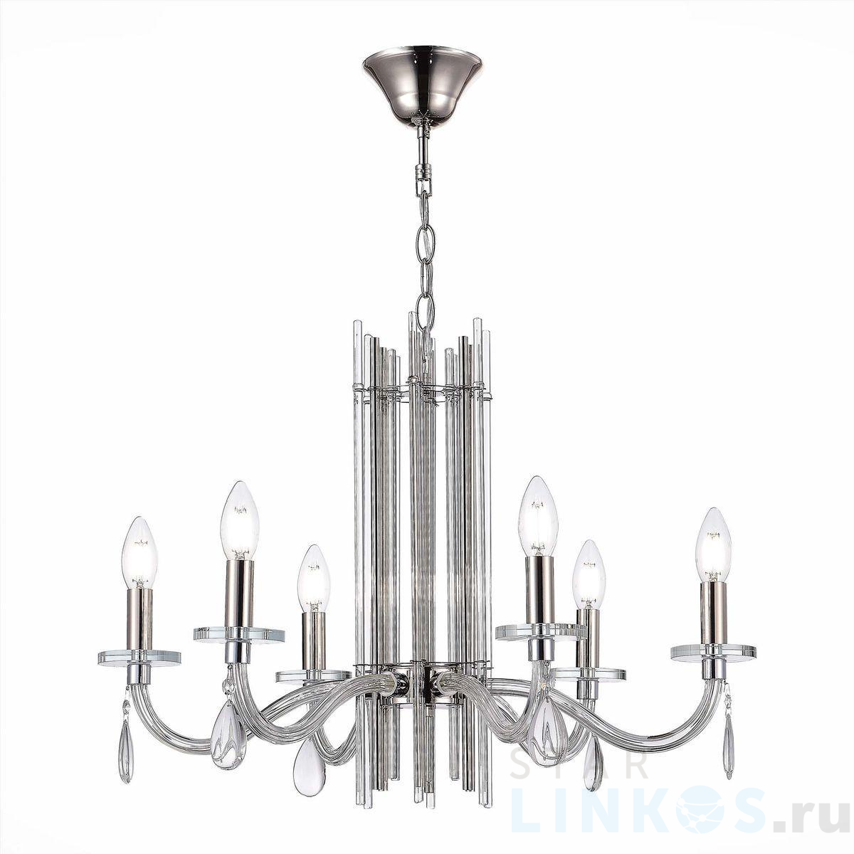 Поставщик рекомендует использовать лампы накаливания с цоколем E14 для освещения площади 12 м2. Подвесная люстра ST Luce Epica SL1656.103.06 в используется в интерьере гостиной с установкой на потолок.