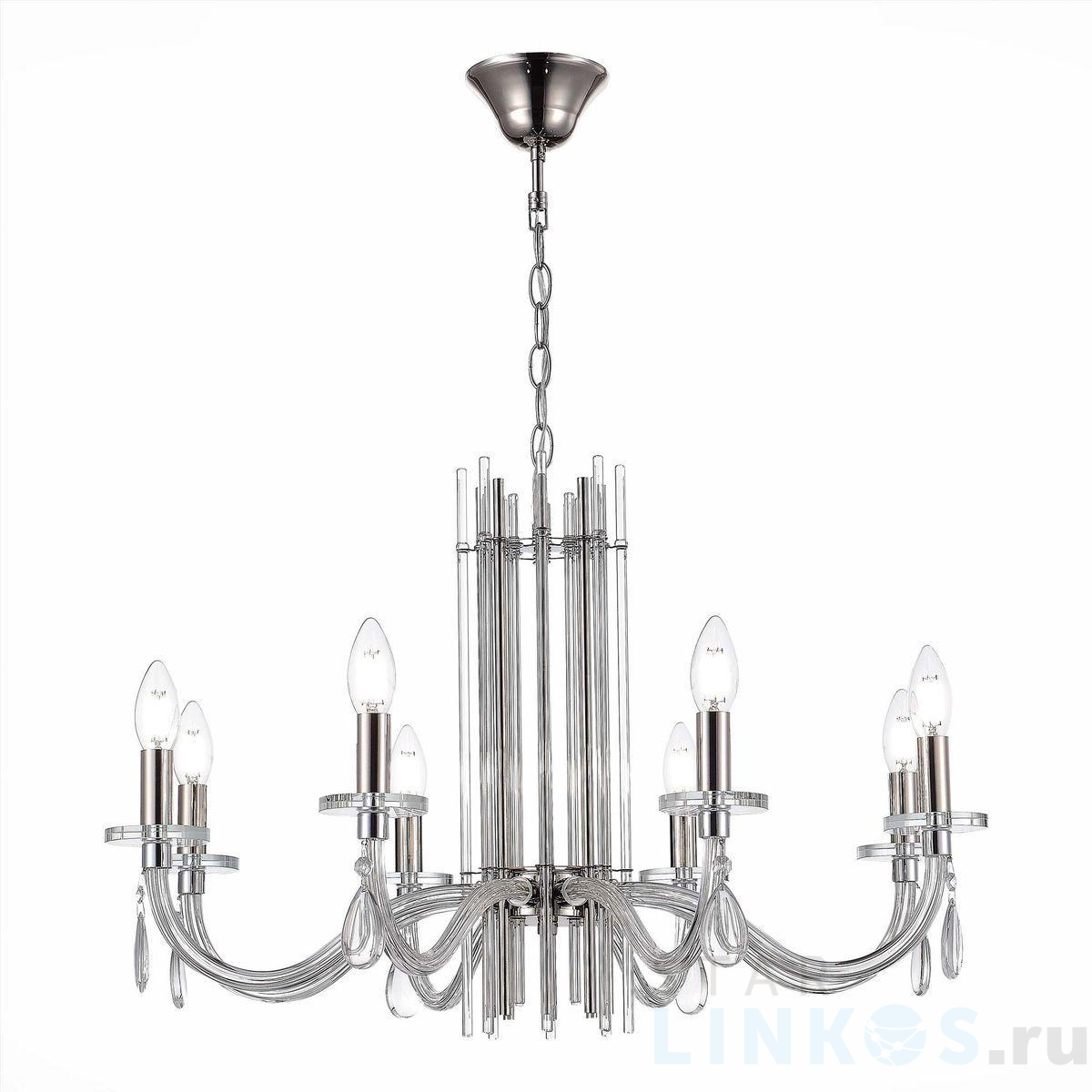 Поставщик рекомендует использовать лампы накаливания с цоколем E14 для освещения площади 18 м2. Подвесная люстра ST Luce Epica SL1656.103.08 в используется в интерьере гостиной с установкой на потолок.