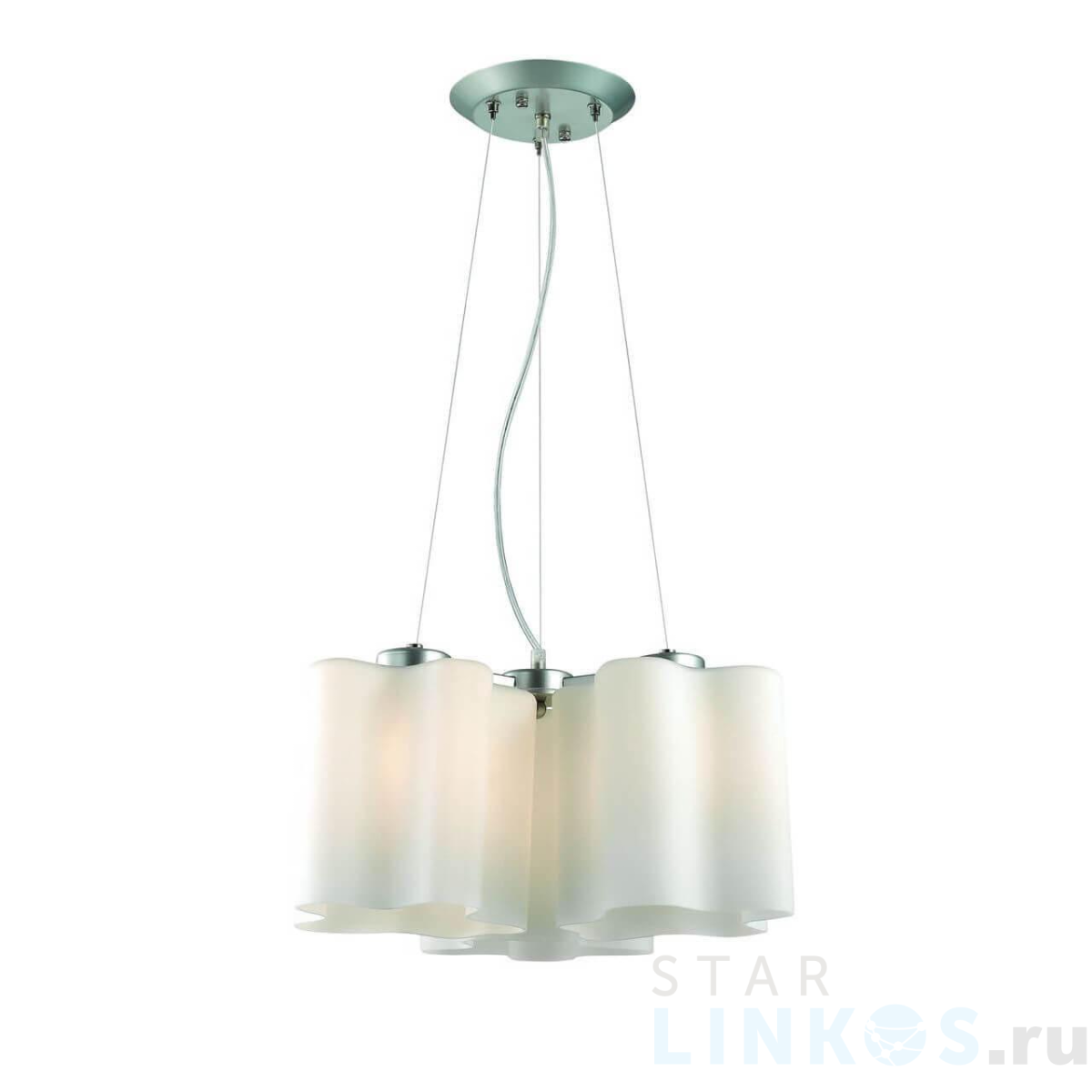 Поставщик рекомендует использовать лампы накаливания с цоколем E27 для освещения площади 10 м2. Подвесная люстра ST Luce Onde SL116.503.03 в стиле Хай-Тек используется в интерьере кафе и ресторанов с установкой на потолок.