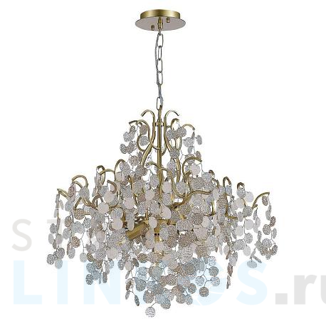 Поставщик рекомендует использовать лампы накаливания с цоколем E14 для освещения площади 24 м2. Подвесная люстра ST Luce Ravello SL1650.303.08 в используется в интерьере гостиной с установкой на потолок.