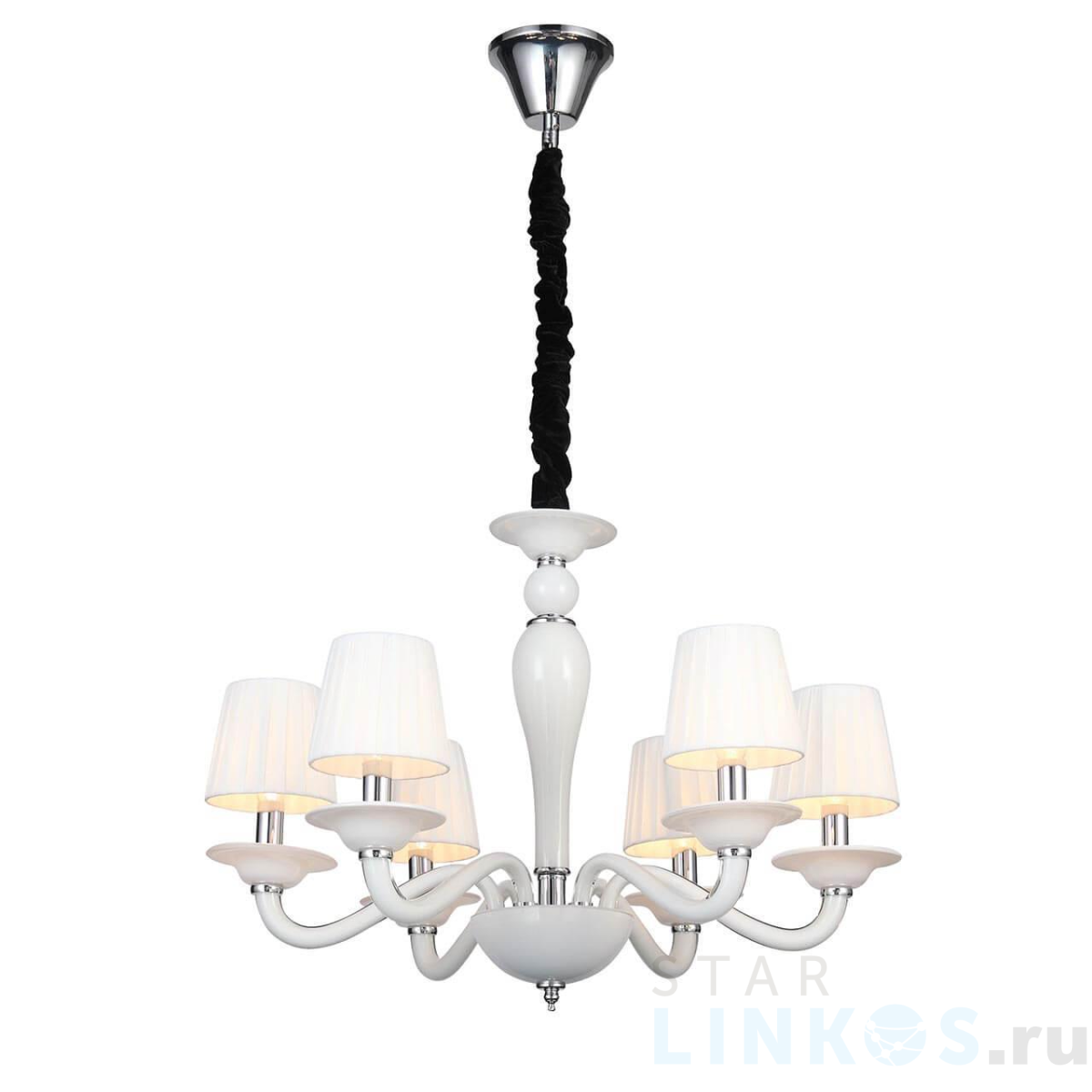 Поставщик рекомендует использовать лампы накаливания с цоколем E14 для освещения площади 12 м2. Подвесная люстра ST Luce Serenatta SL1112.503.06 в используется в интерьере спальни с установкой на потолок.