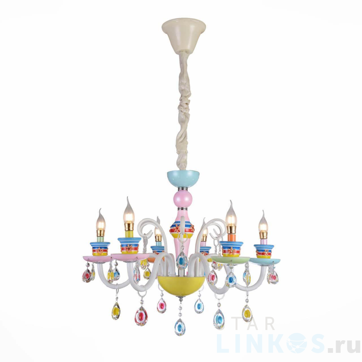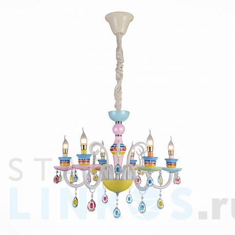 Поставщик рекомендует использовать лампы накаливания с цоколем E14 для освещения площади 13,3 м2. Подвесная люстра ST Luce SL673.783.06 в современном стиле используется в интерьере детской с установкой на потолок.